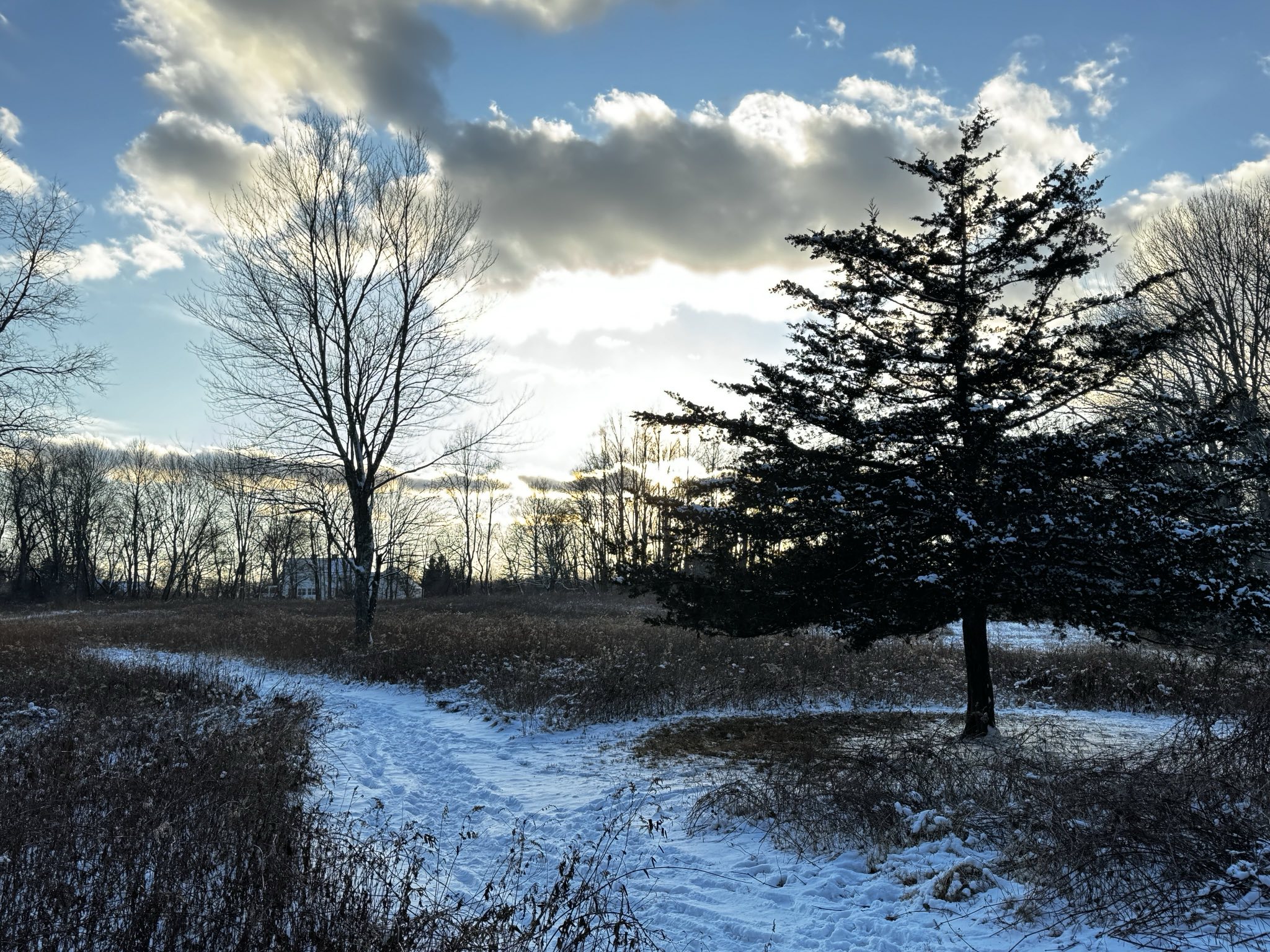 In my humble opinion, it is where The Land Trust perfected its mission of connecting people and nature. On a busy day working from home, a sandwich under this tree can take you anywhere. Don’t mind the snow. The proud evergreen shields the ground below almost like a blanket. If you’re dressed warmly enough, I highly suggest sitting on the ground with your back to this magnificent, living tree. Take a breather, watch the meadow and listen to the residents.