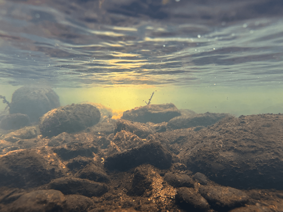 The riverbed is a bit challenging to walk on, given the varying shapes and sizes of the rocks below the surface. Still, it’s manageable with a modicum of caution. To blaze a path, I’ve learned to look at the ripples on the surface. Deeper pools within the river mean calmer water above. With sunlight glistening off the ripples, we explored upstream. Fallen trees lying across the river become natural markers for the kids, who love reaching one goal and then racing to see what the next tree might reveal.