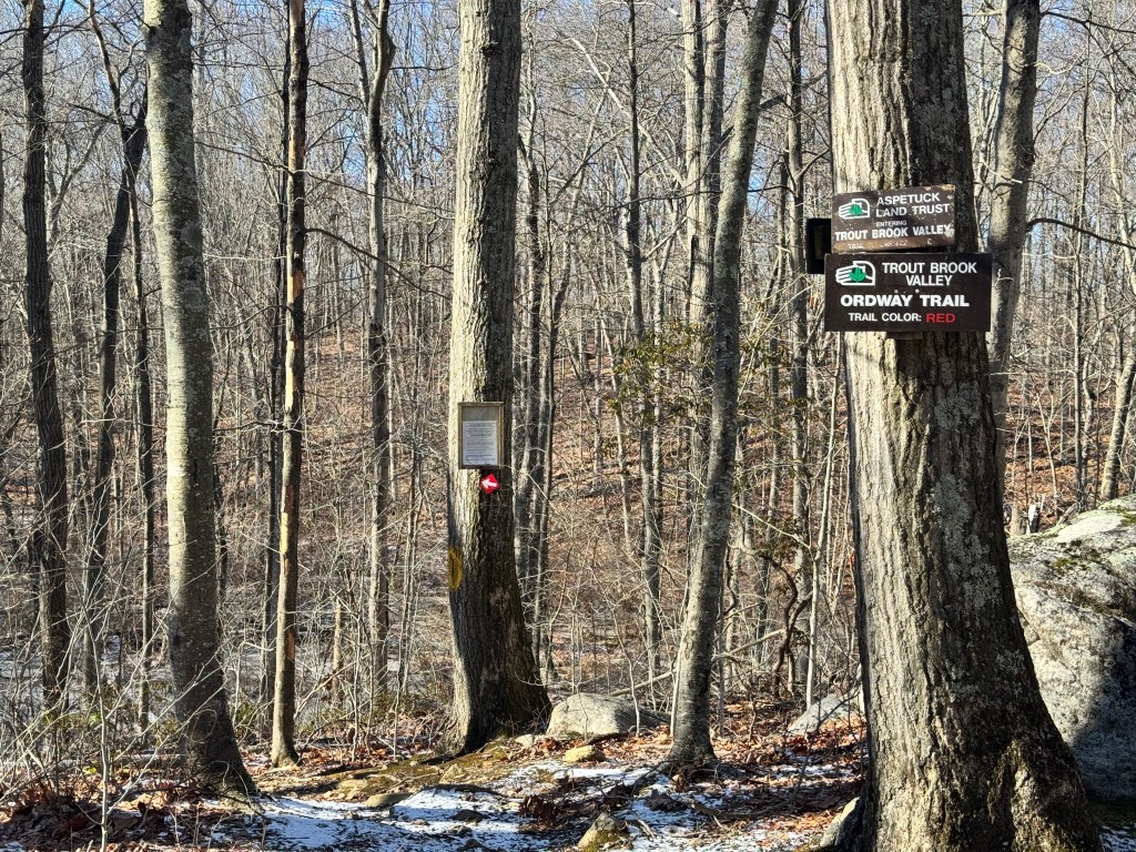 After resting on the rock for a while, I continued up the well-marked trail. The Aspetuck Land Trust, as with all their properties, has done a great job marking the trails so you don’t get lost. At the intersection with the Red Trail (Ordway Trail), I crossed from Trout Brook Valley into Jump Hill Preserve.
