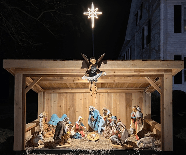 On a cold December evening, when most people were huddled indoors to escape the arctic air, a group of men gathered around a partially assembled wooden structure that would soon become a familiar and powerful sight. What began as an idea transformed into a stack of lumber and then a structure that would soon become a crèche displayed in front of the rectory at Notre Dame on Morehouse Road in Easton. A quiet but bright sign of care, craftsmanship, and fraternity.