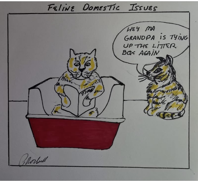 A friend of ours worked for a publication for the Fairfield County Medical Association and did put some into a few of their journals. During Covid, I started emailing them to all my friends as many of us were quarantined. I actually went on Facebook and Instagram way before Covid to try and sell my paintings. Only lately have I been putting cartoons on those social media outlets.