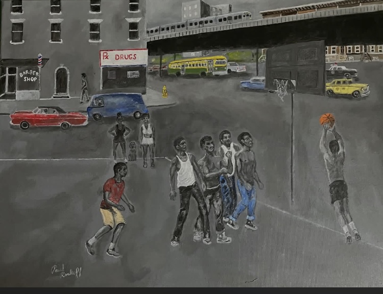 I was initially influenced by Norman Rockwell. I wanted to do his kind of nostalgic scenes but in black and white. Eventually, I added some splashes of color. I then became influenced by Leroy Neiman.