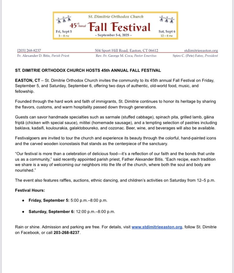 St Dimitrie Orthodox Christian Church Festival 2025, September 5th and 6th!